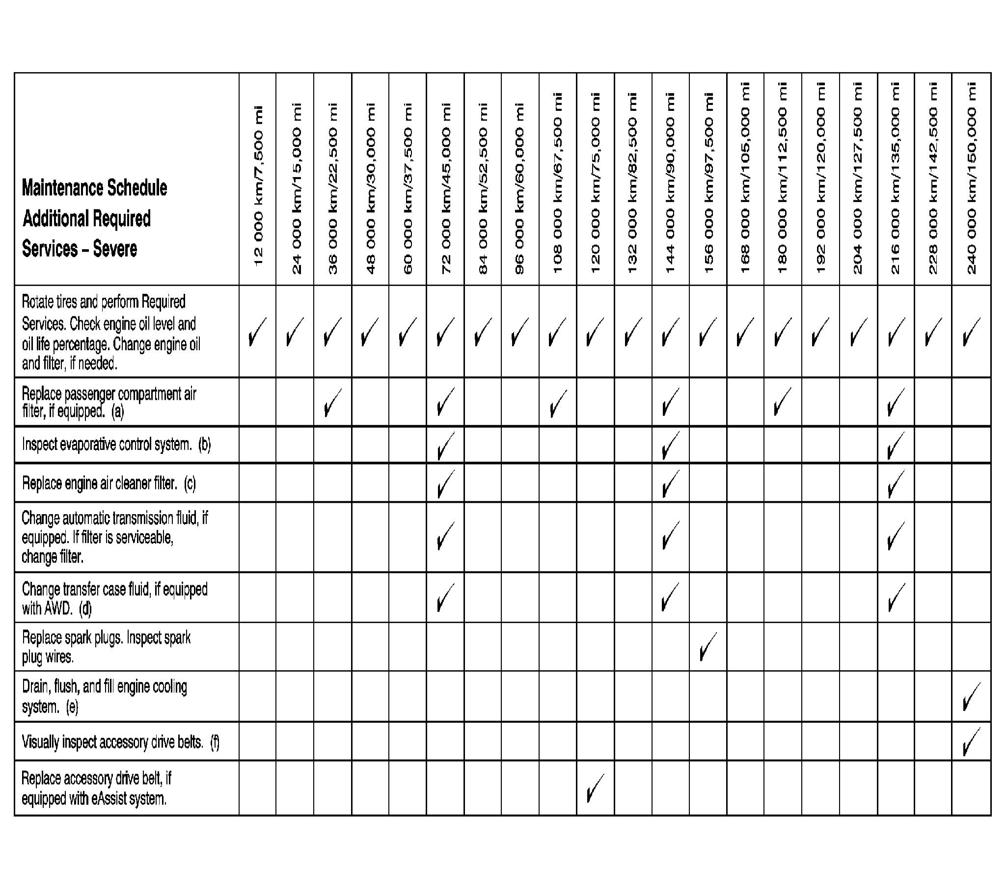 Footnotes - Maintenance Schedule Additional Required Services - Severe