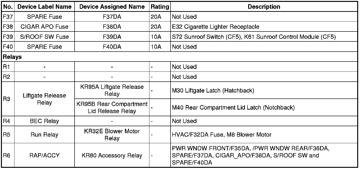 X51A Fuse Block - Instrument Panel Label