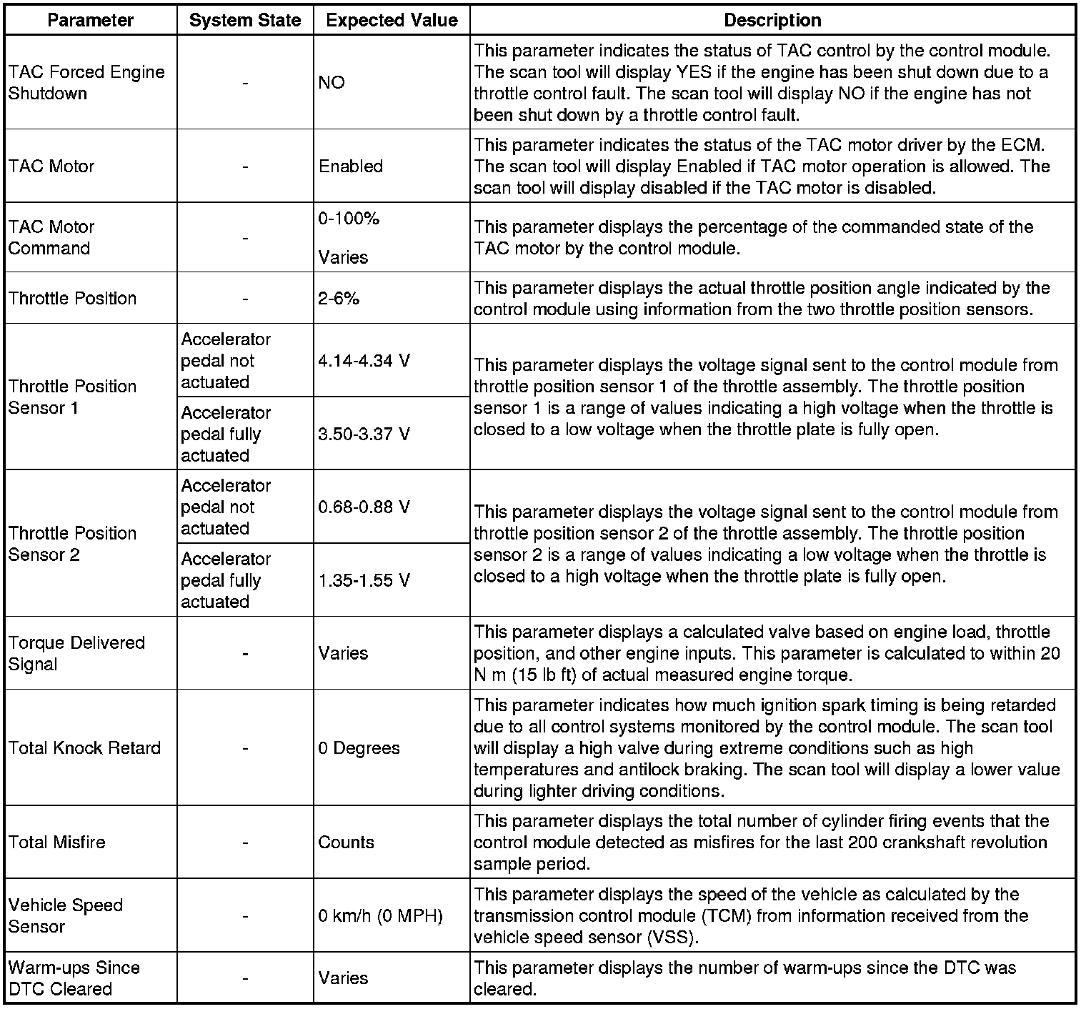 Only the parameters listed below are referenced in this service manual for use in diagnosis. If all values are within the typical range described below, refer to Symptoms - Engine Controls Symptoms - Engine Controls for engine diagnosis.