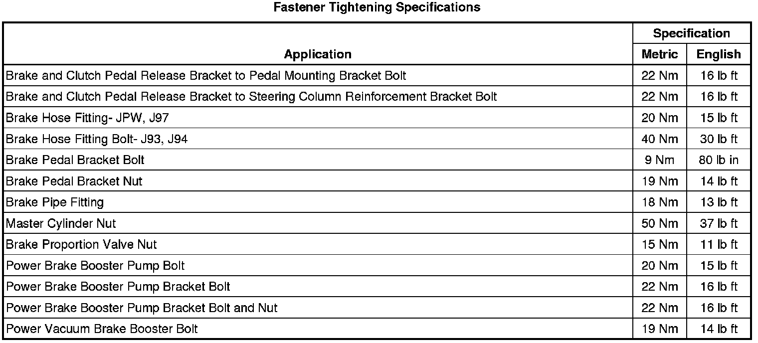 Fastener Tightening Specifications