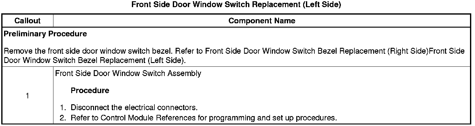 Front Side Door Window Switch Replacement (Left Side)