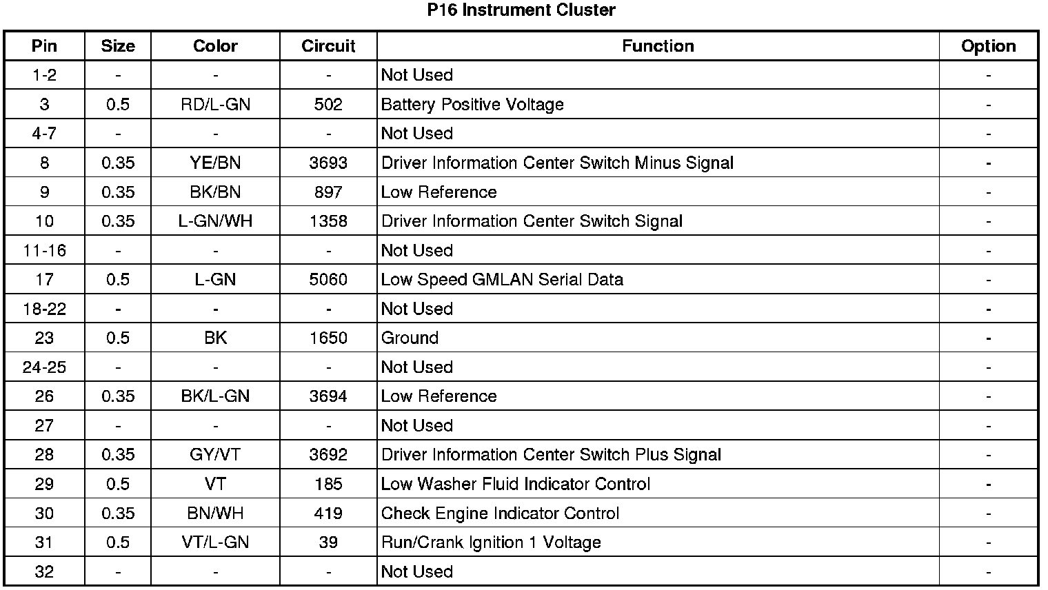 P16 Instrument Cluster
