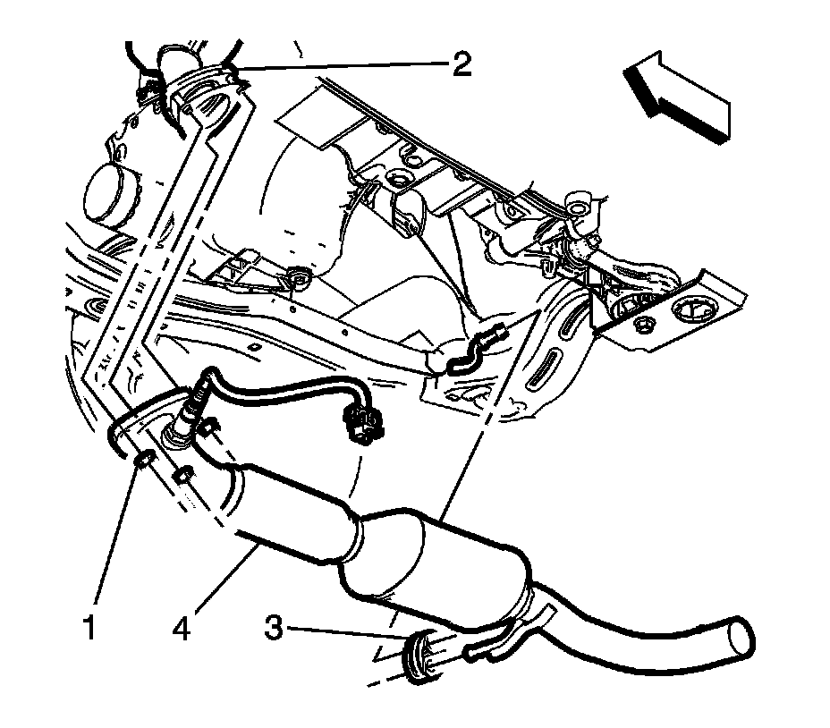 15. Install the catalytic converter assembly (4). Refer to Catalytic Converter Replacement Service and Repair.