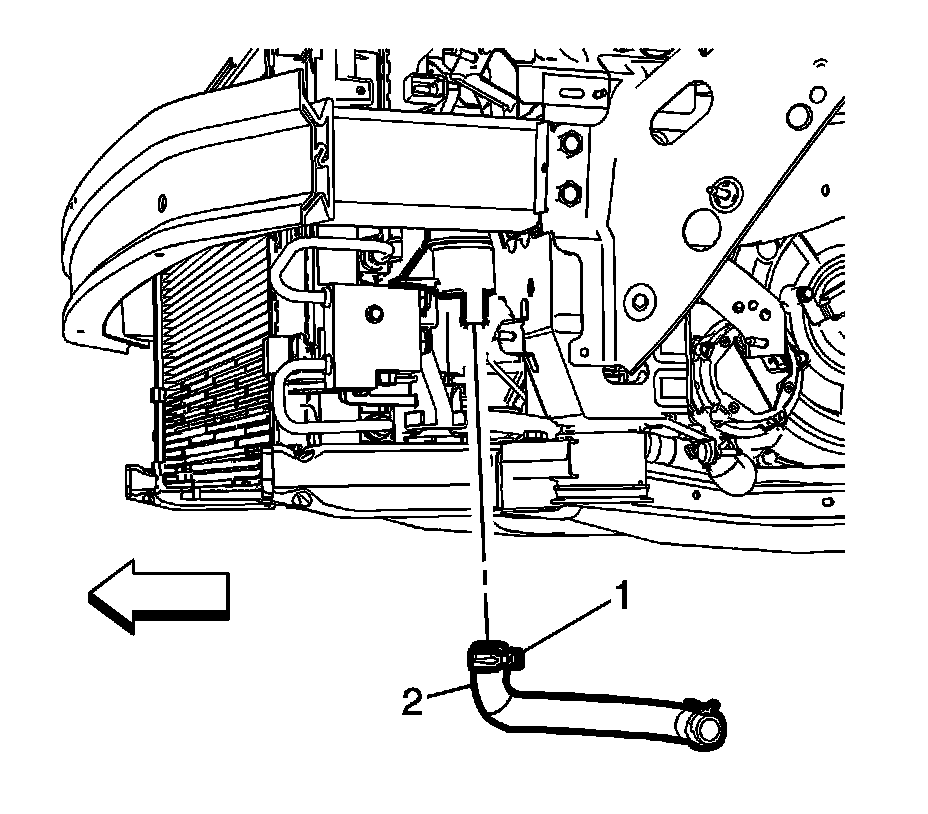 2. Install the drive motor generator control module coolant pump hose (2) to the drive motor battery coolant air separator.