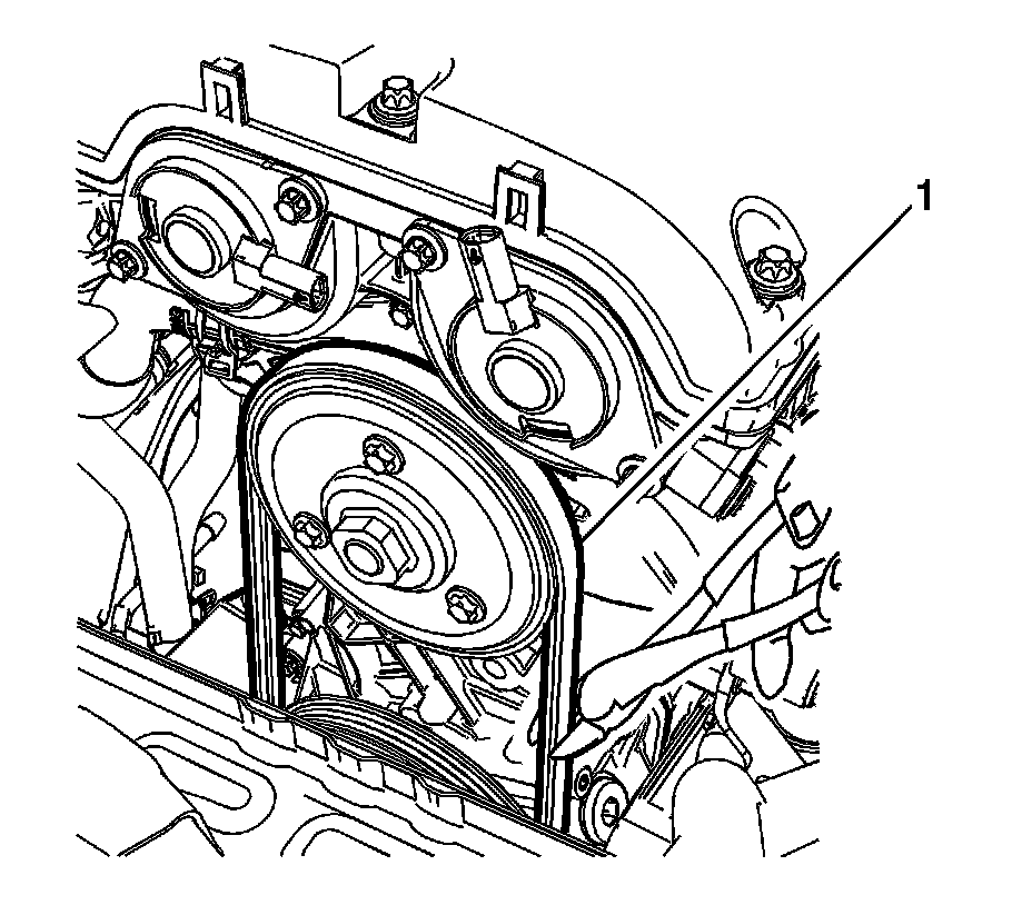 5. Cut the water pump belt (1) with a appropriate cutting tool as shown.