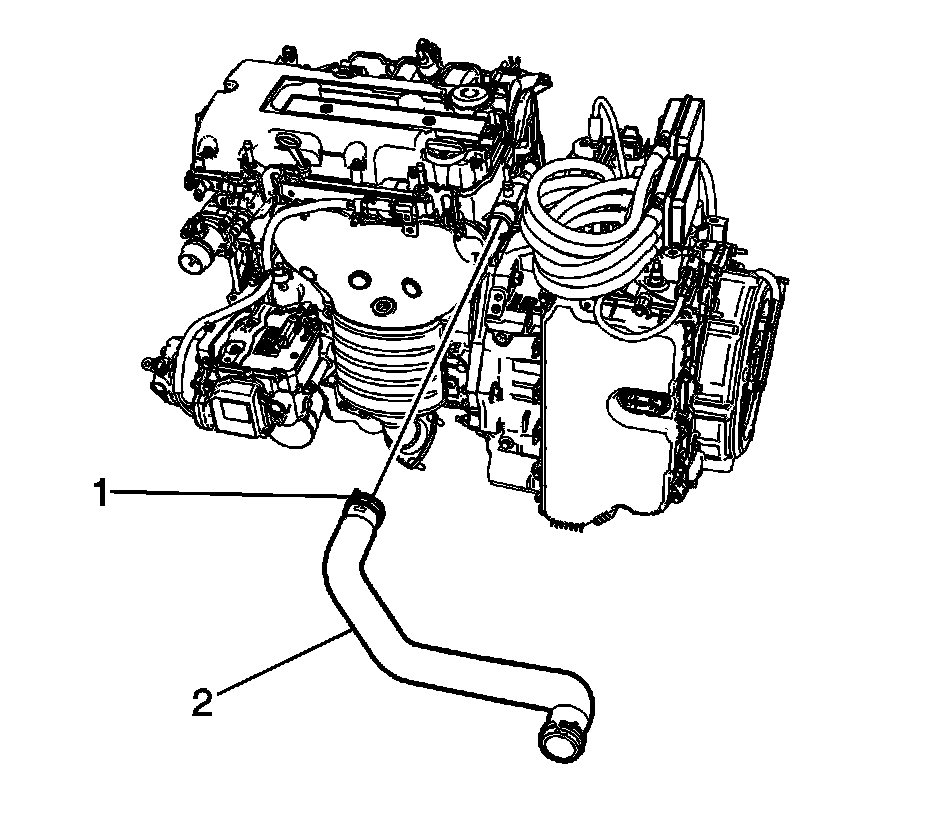 4. Remove the radiator inlet hose (2) from the engine.