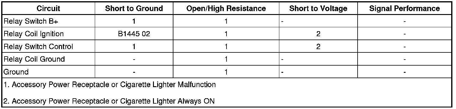 Accessory Power Receptacle or Cigarette Lighter Malfunction