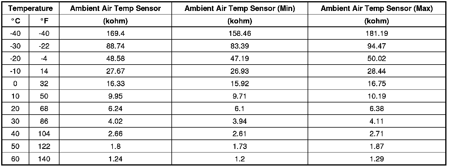 Ambient Air Temperature Sensor Resistance