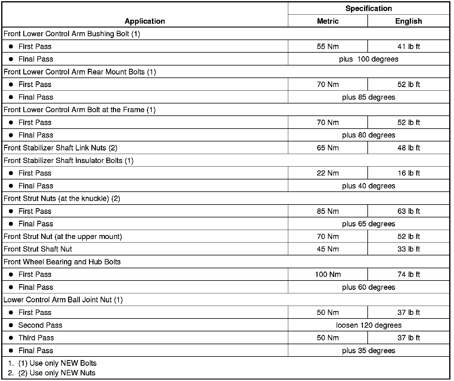 Fastener Tightening Specifications
