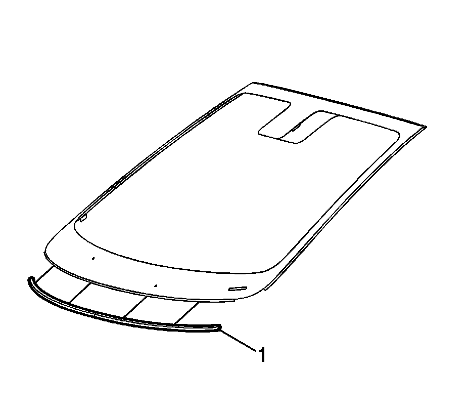 12. Remove the molding (1) from the lower edge of the old windshield if the new windshield is not equipped.