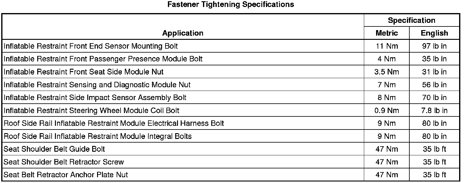 Fastener Tightening Specifications