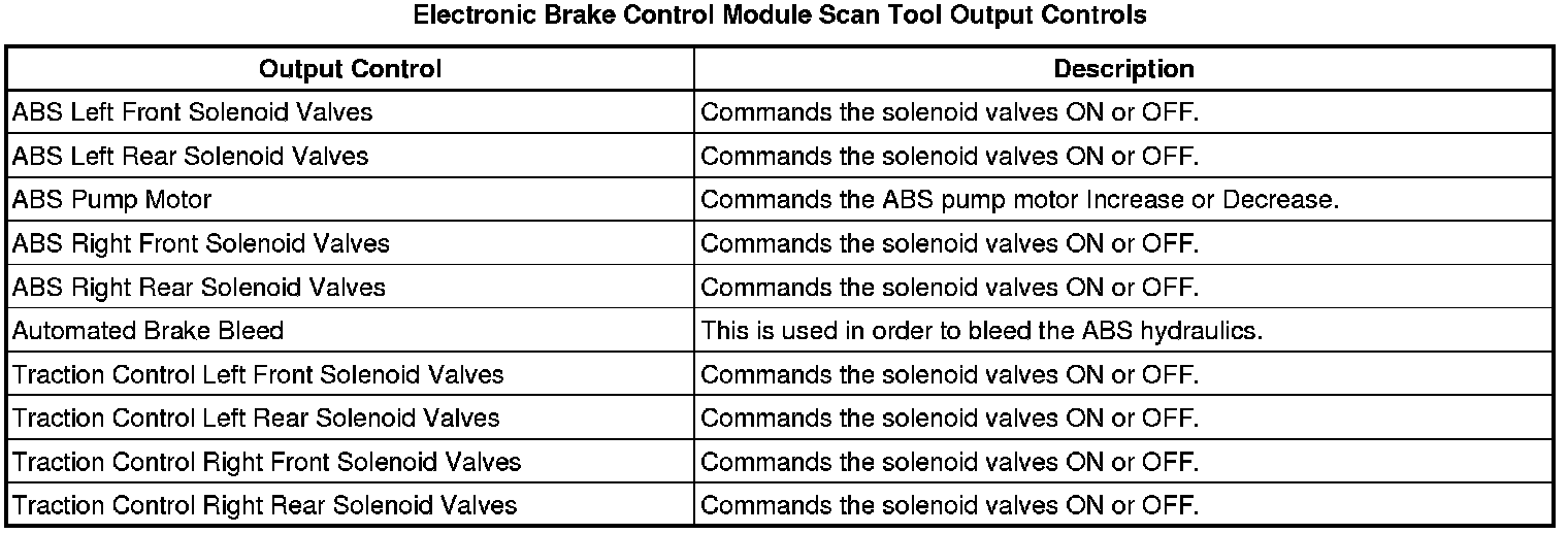 The Electronic Brake Control Module scan tool data parameters list contains all ABS related parameters that are available on the scan tool. The list is arranged in alphabetical order. A given parameter may appear in any one of the data lists.