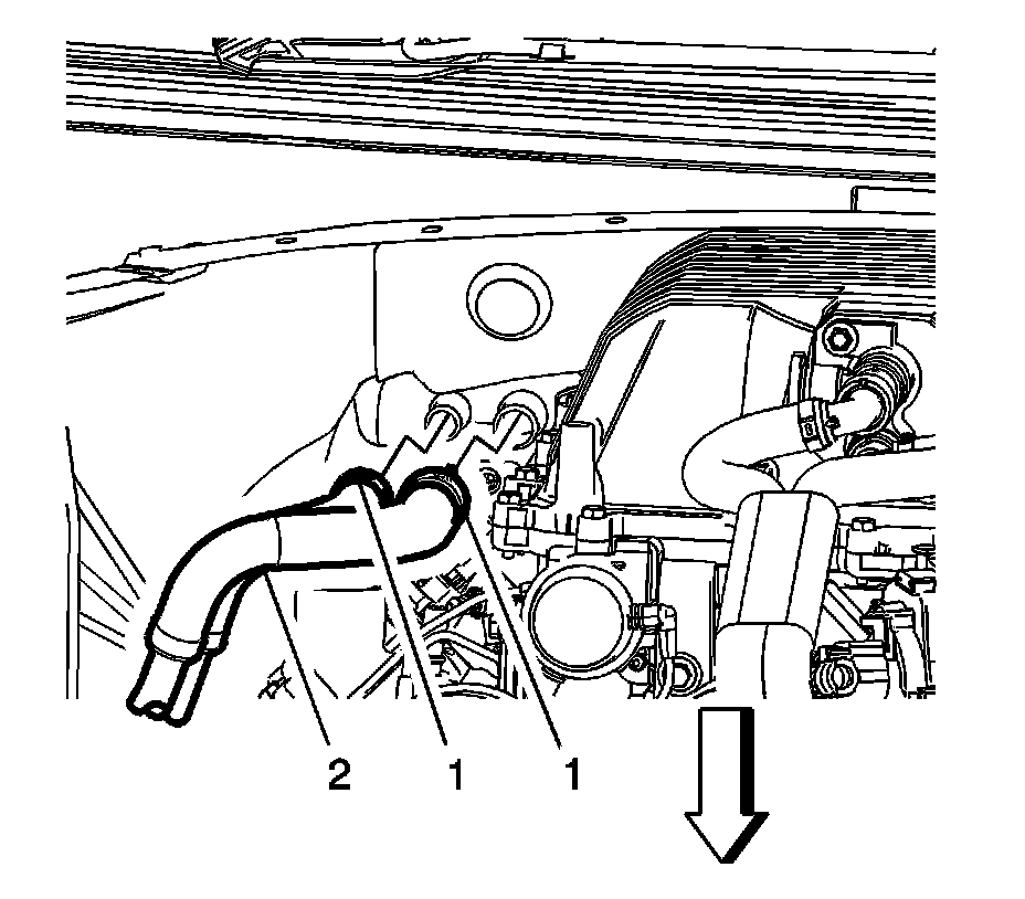 1. Drain the cooling system. Refer to Cooling System Draining and Filling (GE 47716) Cooling System Draining and Filling (GE 47716)Cooling System Draining and Filling (LSA, LS3, L99 Static Fill) Cooling System Draining and Filling (Static Fill)Cooling System Draining and Filling (LFX, Static Fill) Cooling System Draining and Filling (Static Fill).