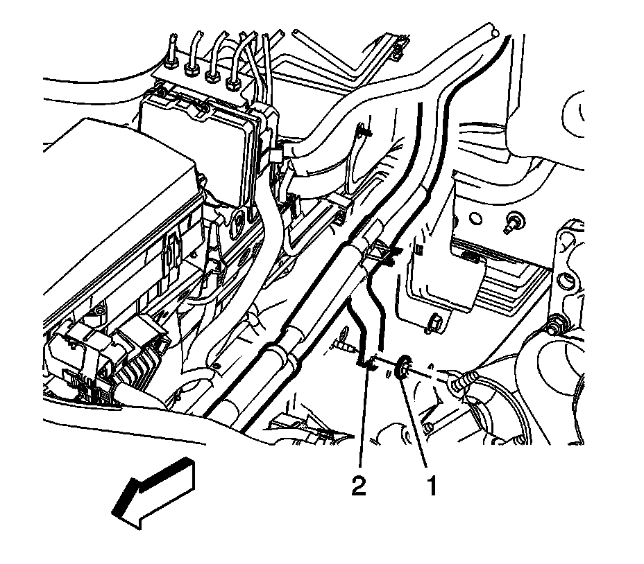 8. Remove the fuel feed and return front pipe heat shield. Refer to Fuel Feed and Return Front Pipe Heat Shield Replacement Fuel Feed and Return Front Pipe Heat Shield Replacement.