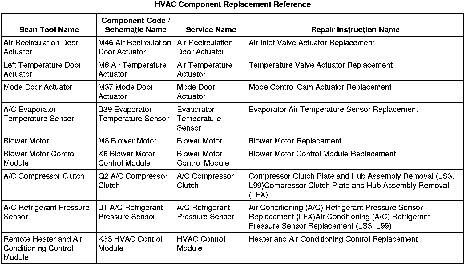 HVAC Component Replacement Reference