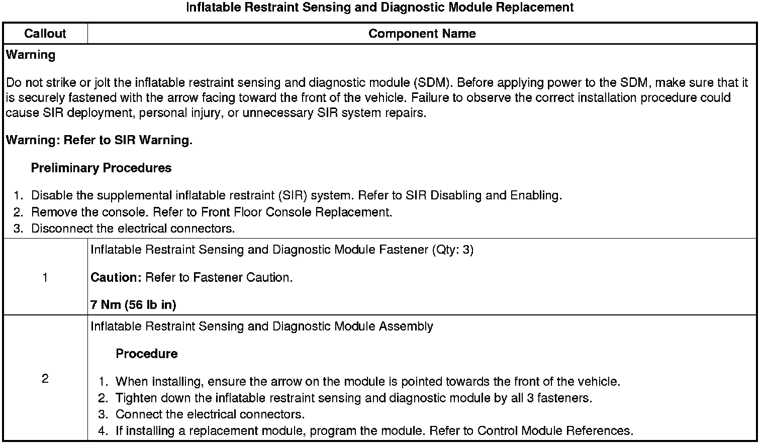 Inflatable Restraint Sensing and Diagnostic Module Replacement