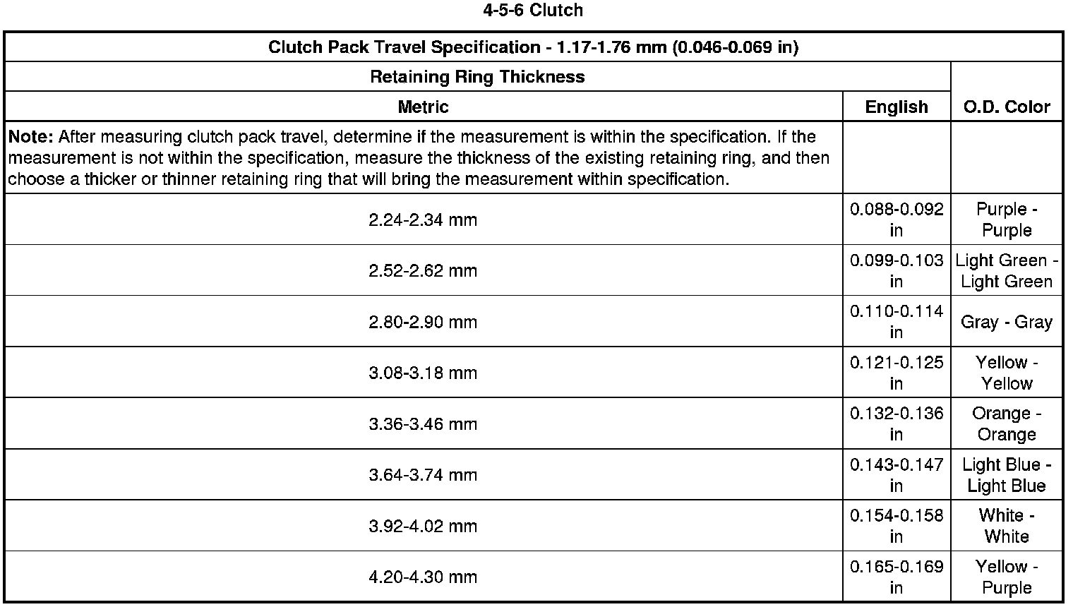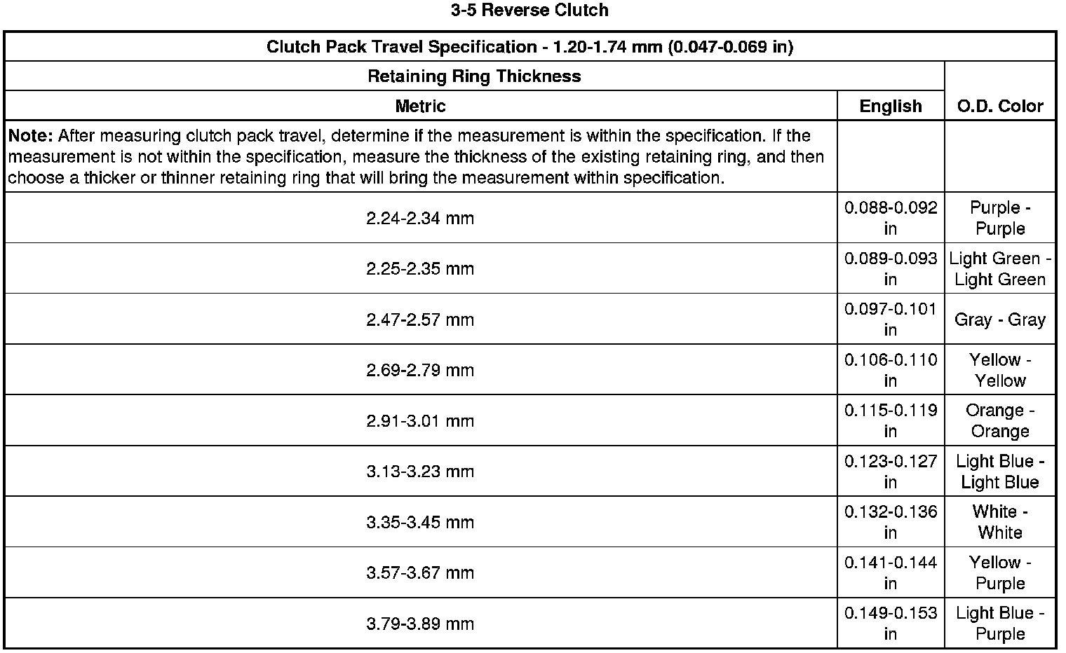 Clutch Backing Plate Retaining Ring Specifications (6L50)