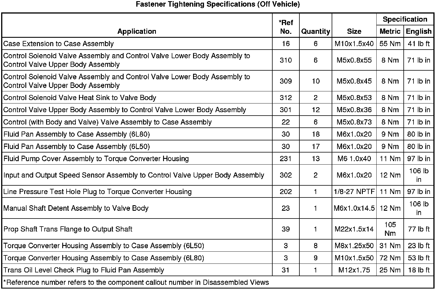 Fastener Tightening Specifications (Off Vehicle)