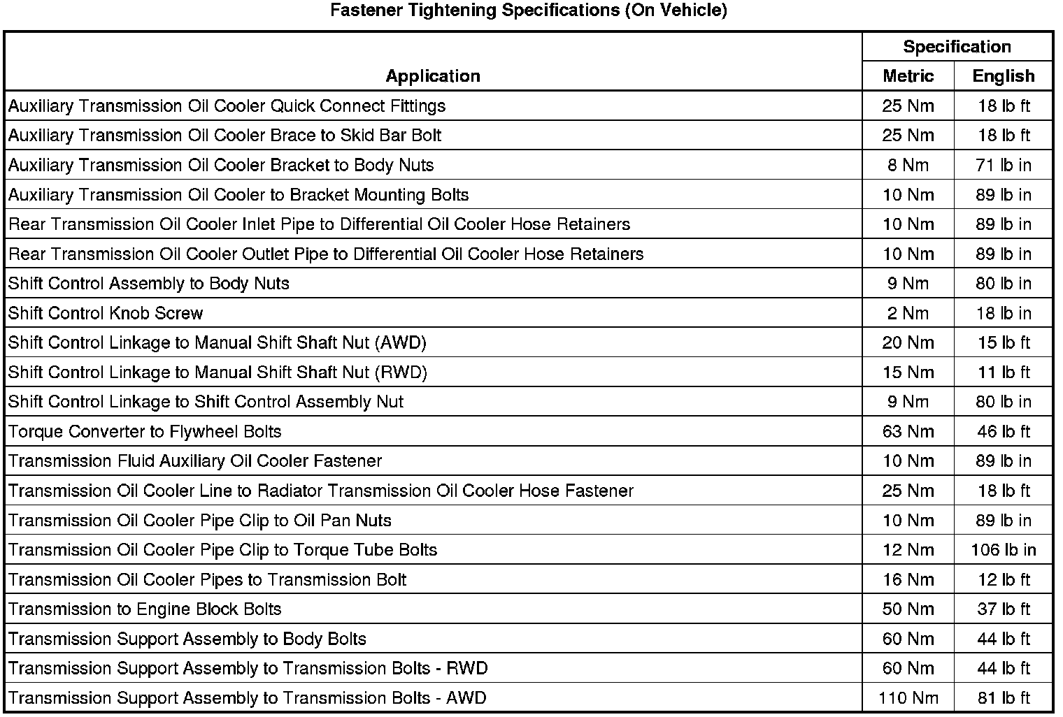 Fastener Tightening Specifications (On Vehicle)