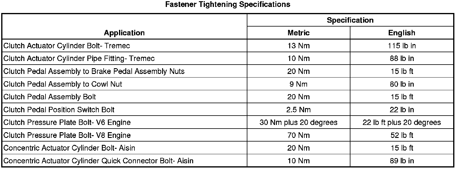 Fastener Tightening Specifications