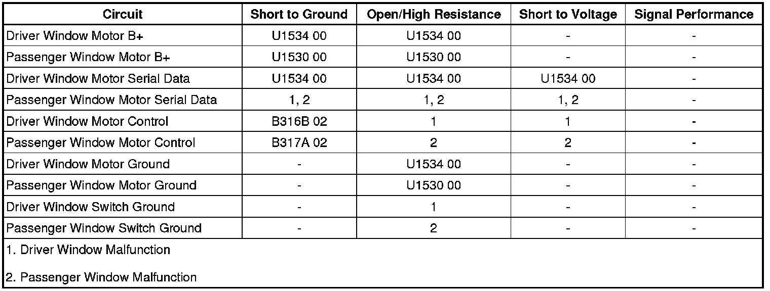 Refer to Circuit/System Testing - Driver/Passenger Window Motor Malfunction