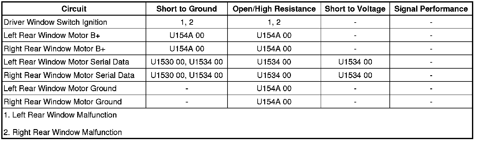 Refer to Circuit/System Testing - Driver Window Switch Malfunction.