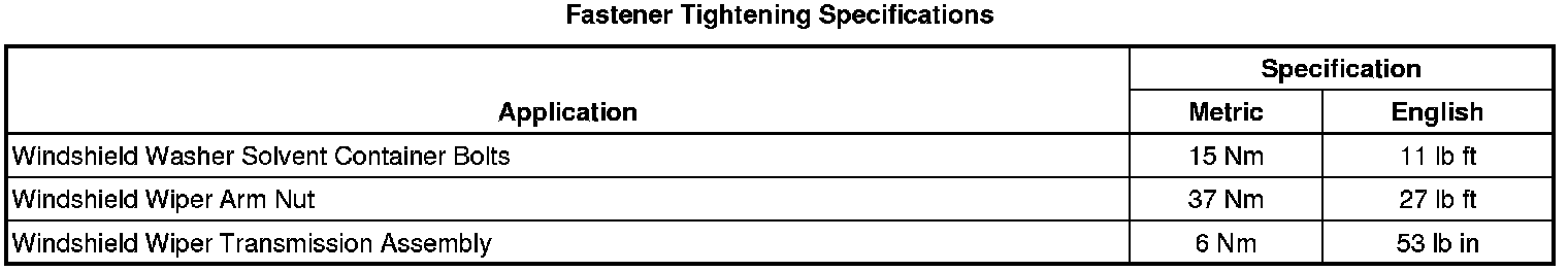 Wiper and Washer Systems: Specifications