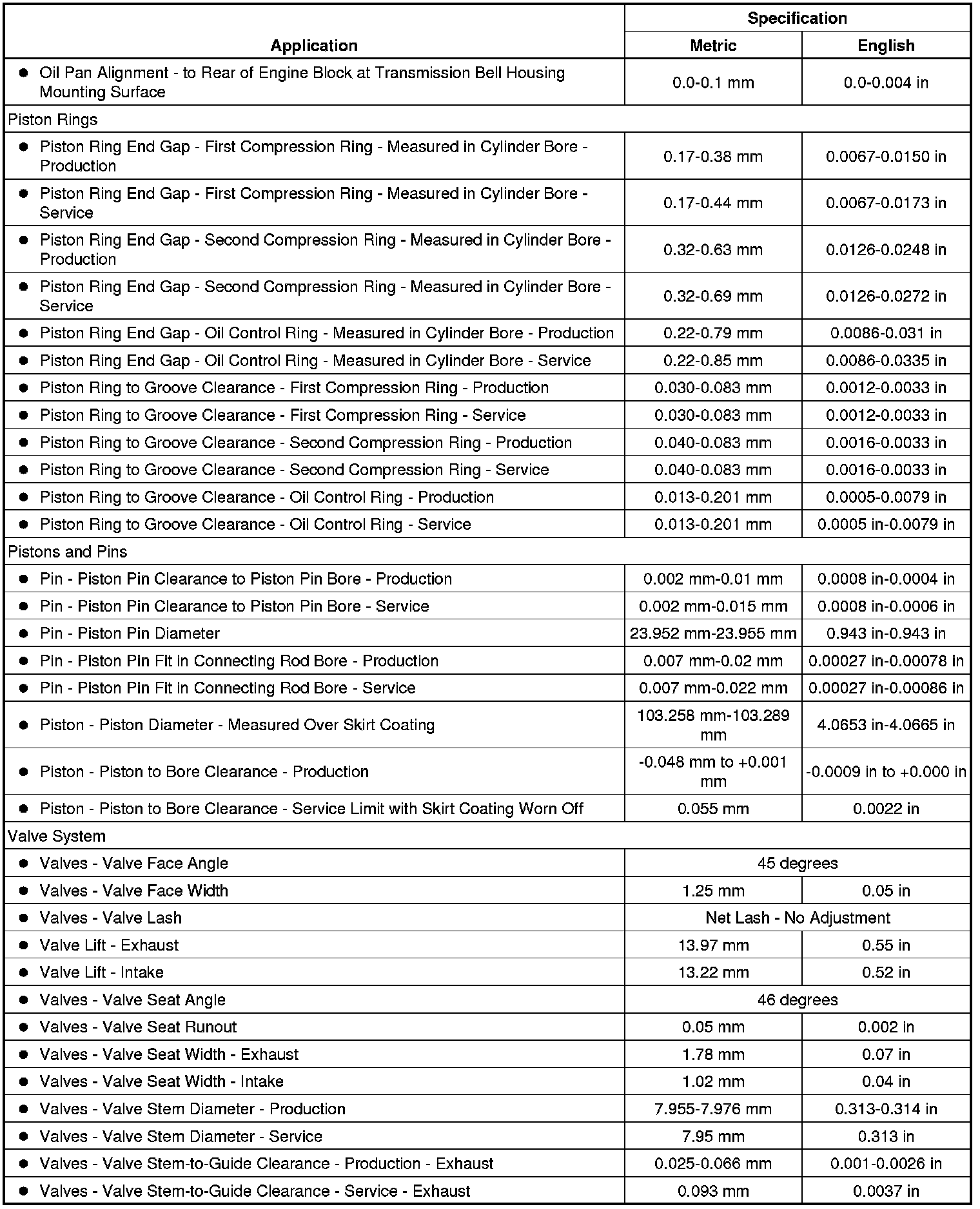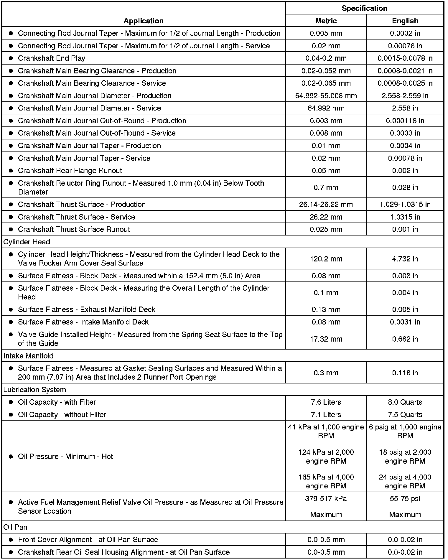 Engine Mechanical Specifications (6.2L LS3)