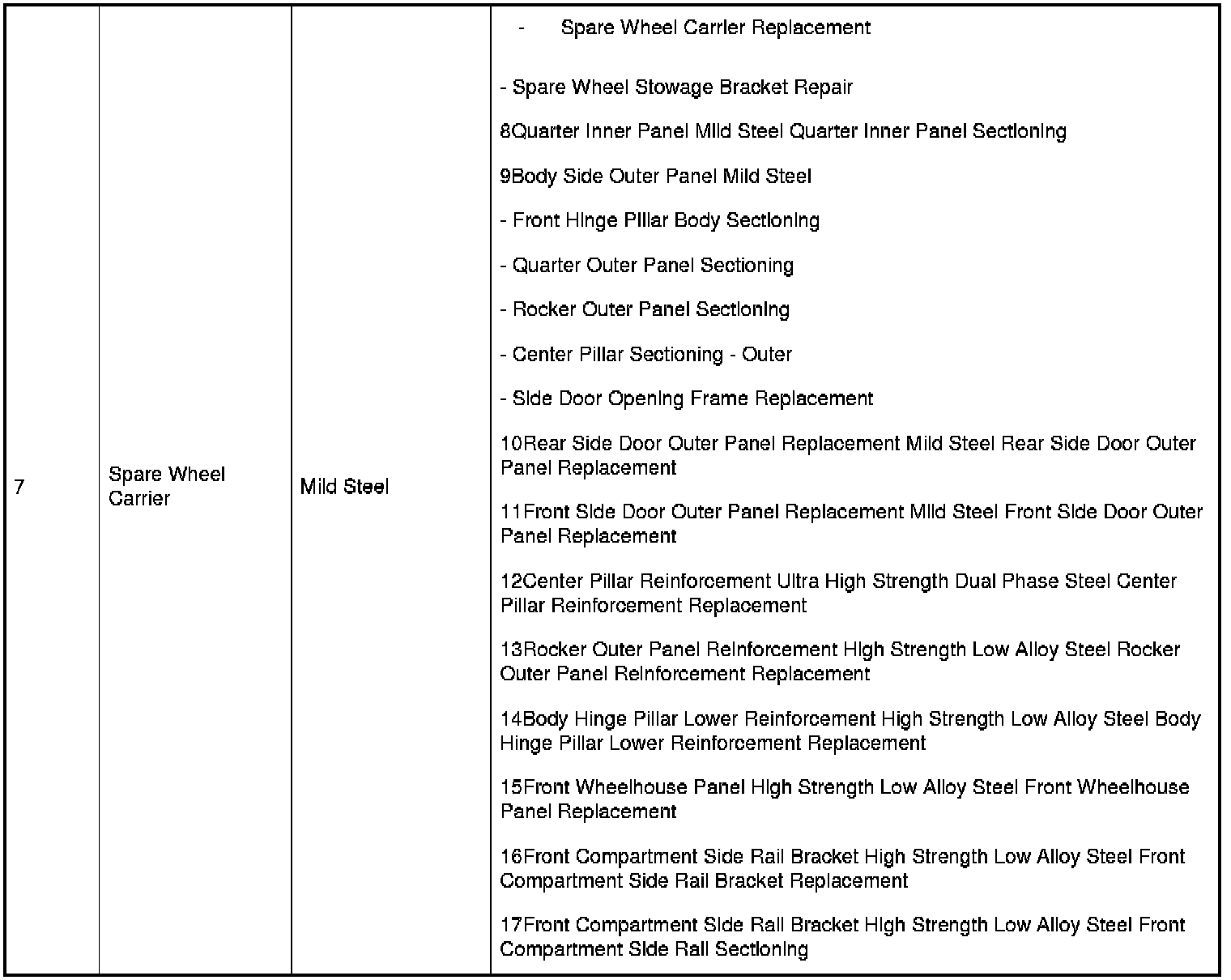 17Front Compartment Side Rail Bracket High Strength Low Alloy Steel Front Compartment Side Rail Sectioning