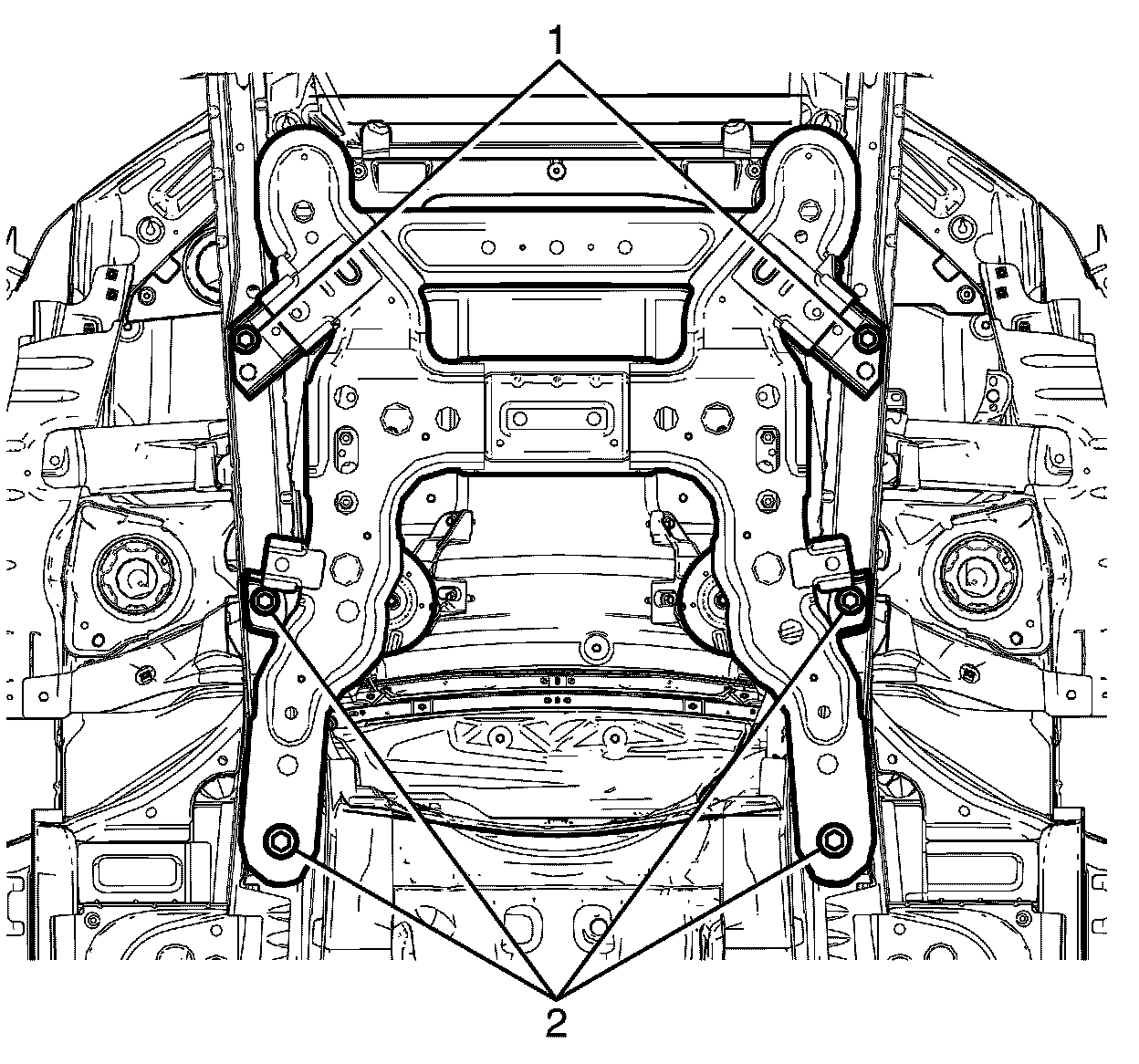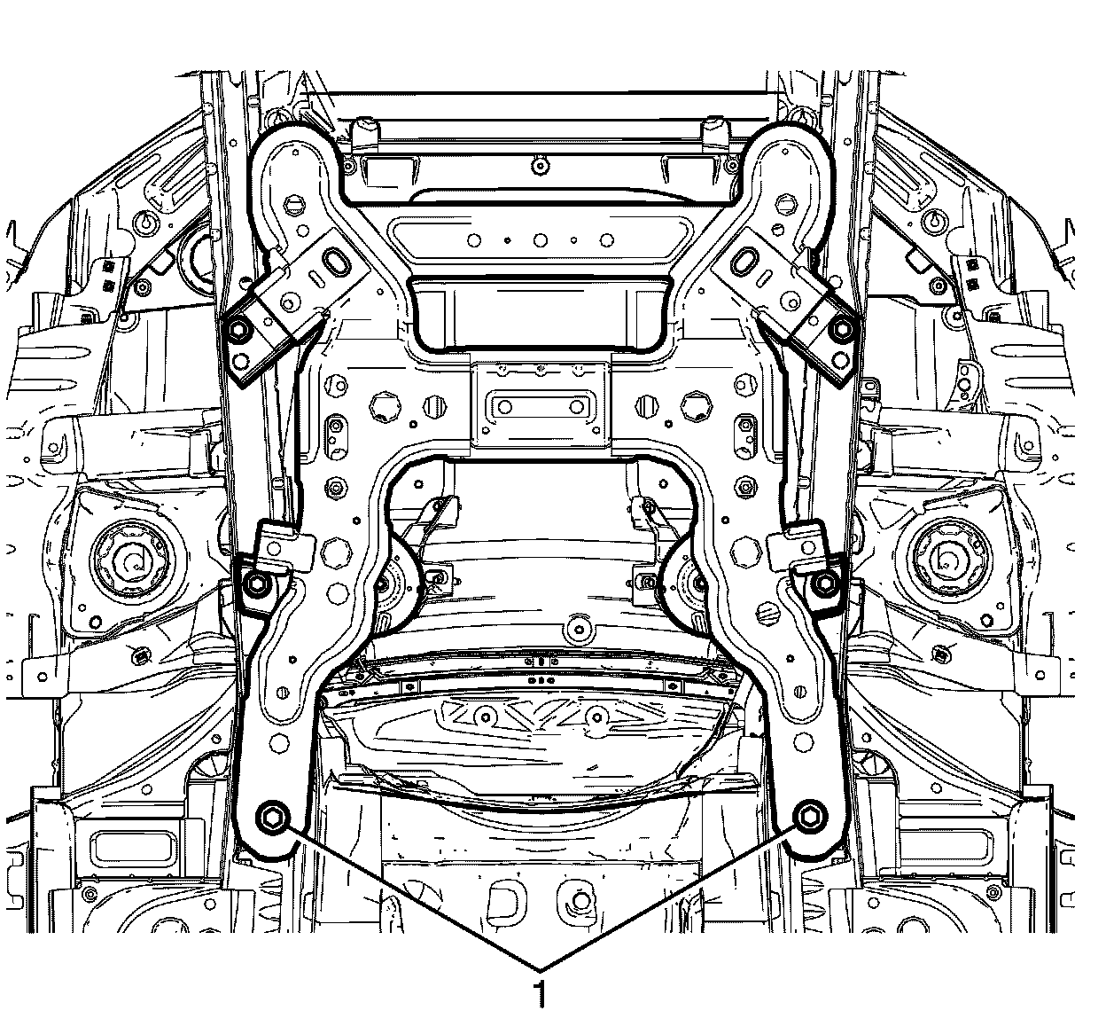 9.Install the front subframe to body retaining bolt (1) and tighten to160 N �m (118 lb ft). Repeat for opposite side.