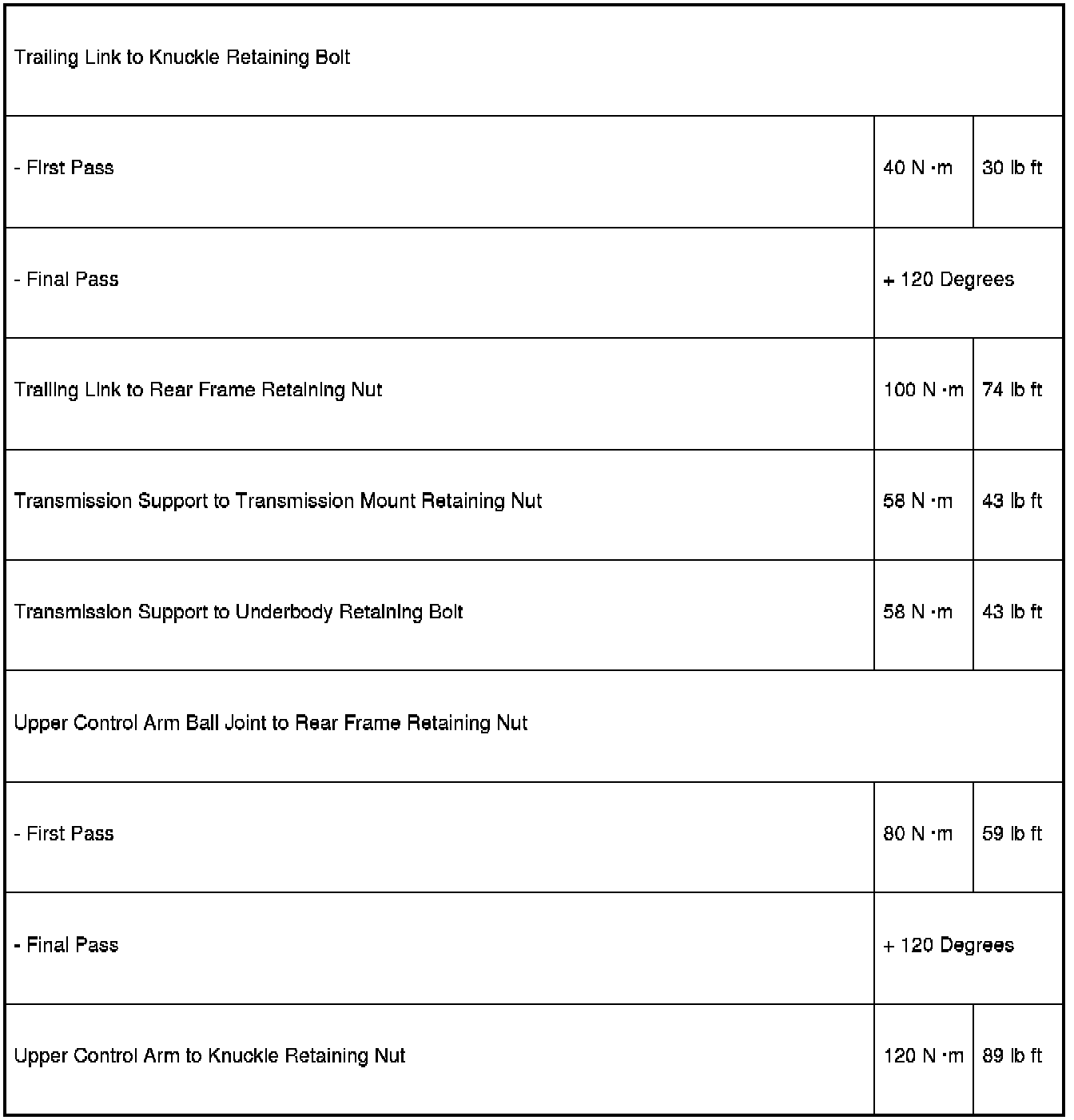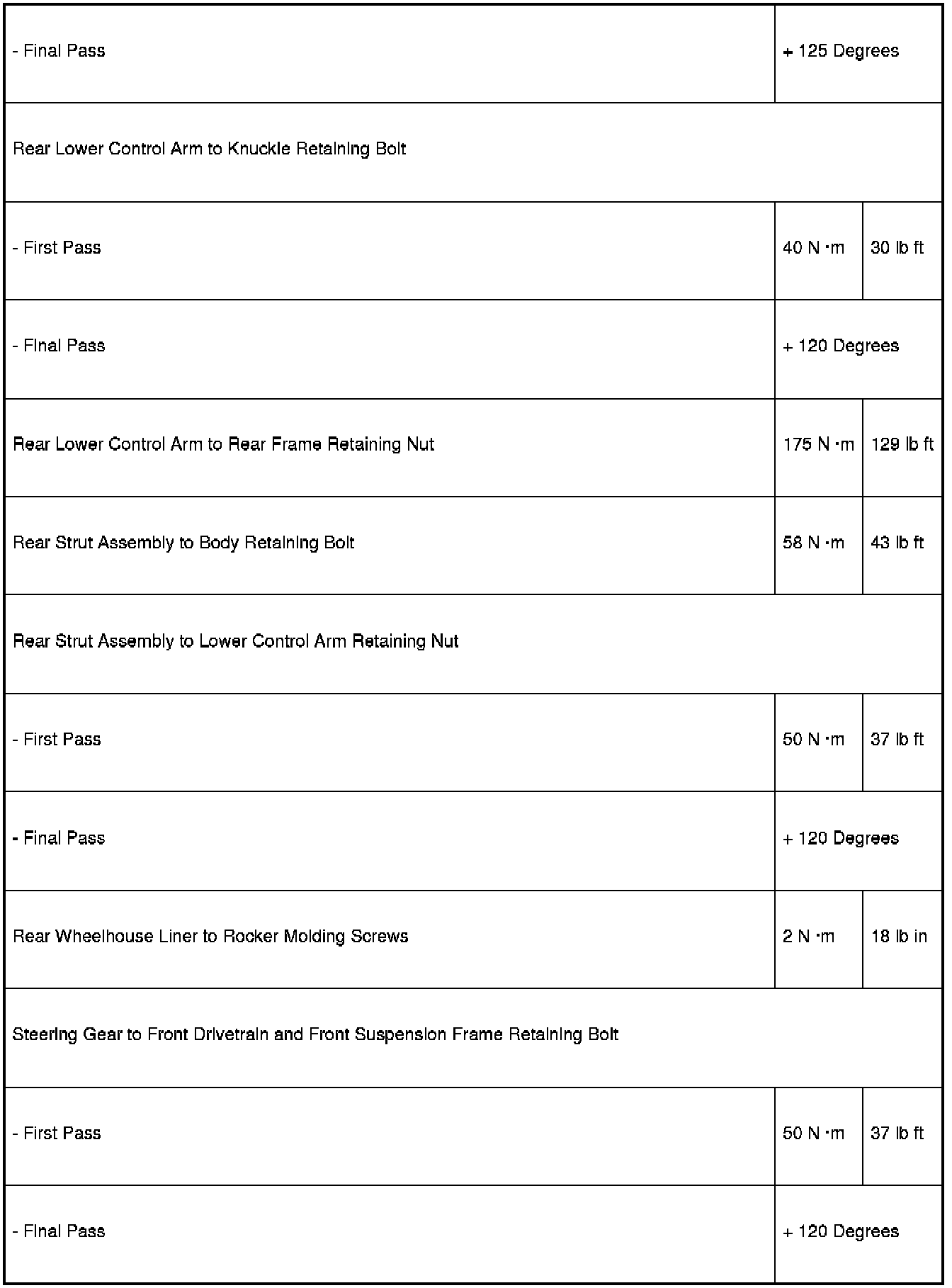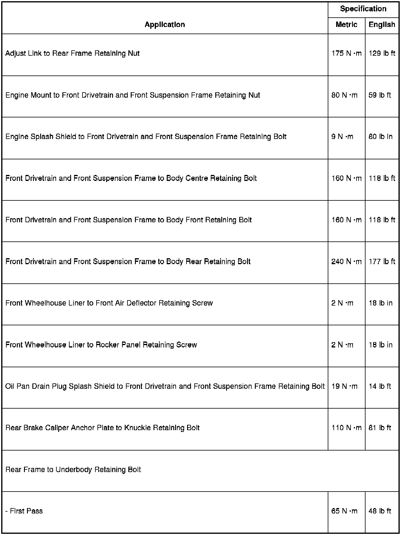 Fastener Tightening Specifications