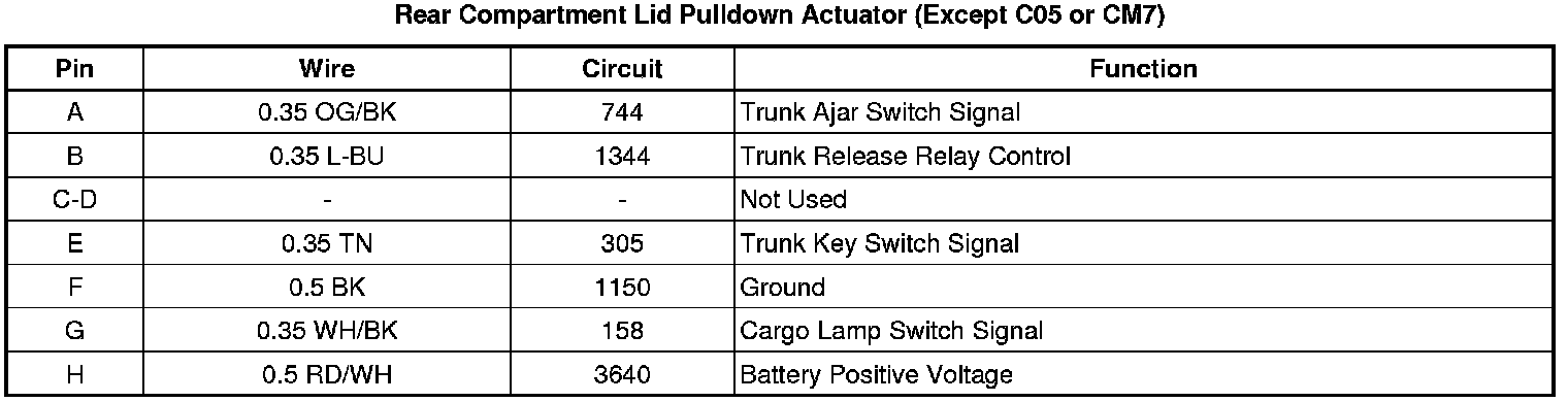Rear Compartment Lid Pulldown Actuator (Except C05 or CM7)