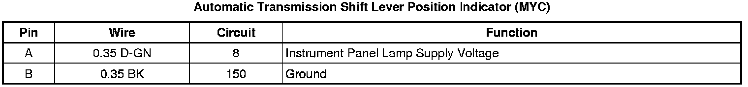 Automatic Transmission Shift Lever Position Indicator (MYC)