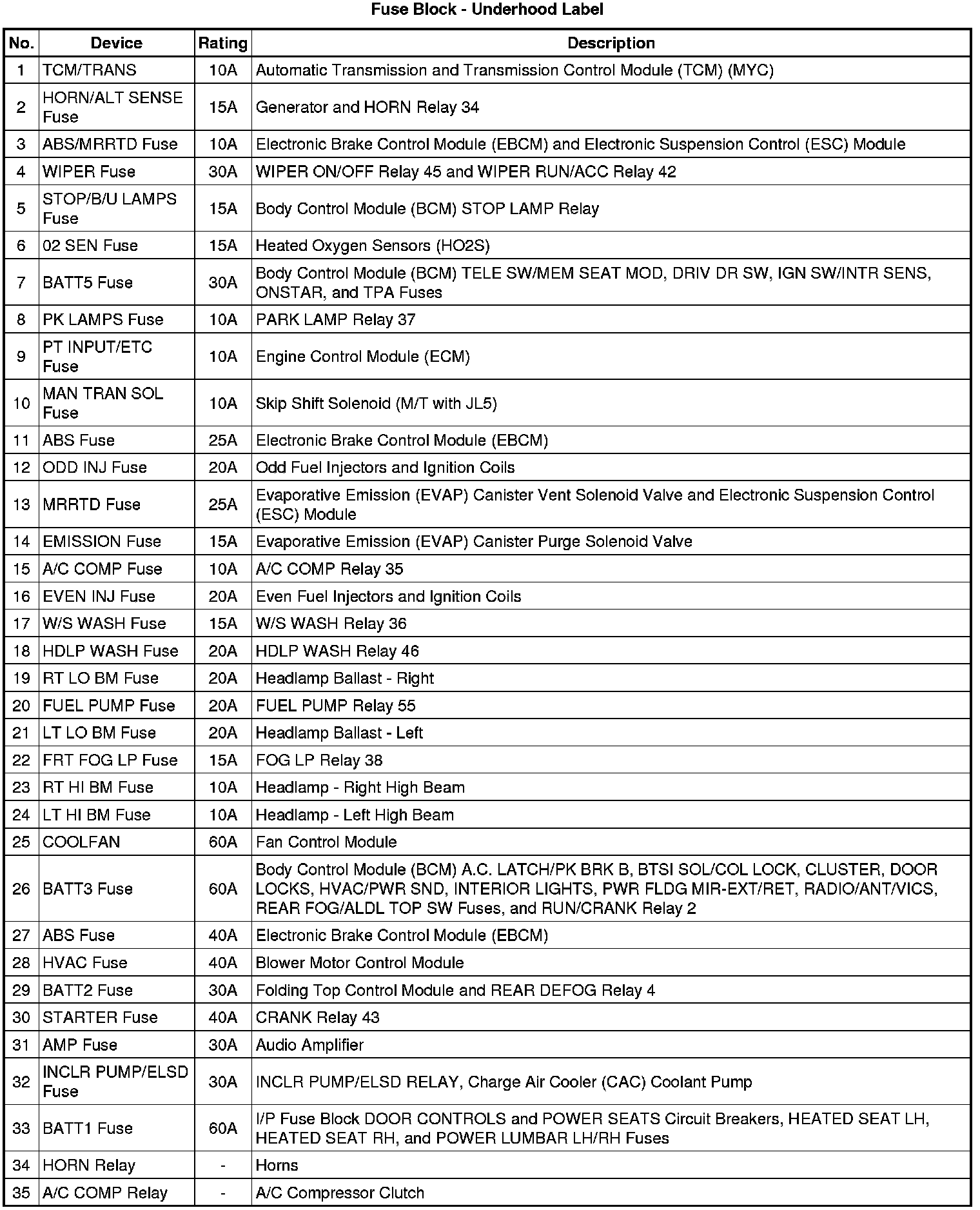 Fuse Block - Underhood Label