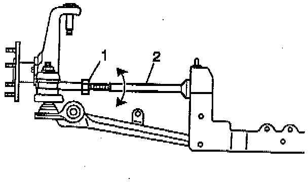 1. Loosen the rear suspension adjustment link lock nut (1).