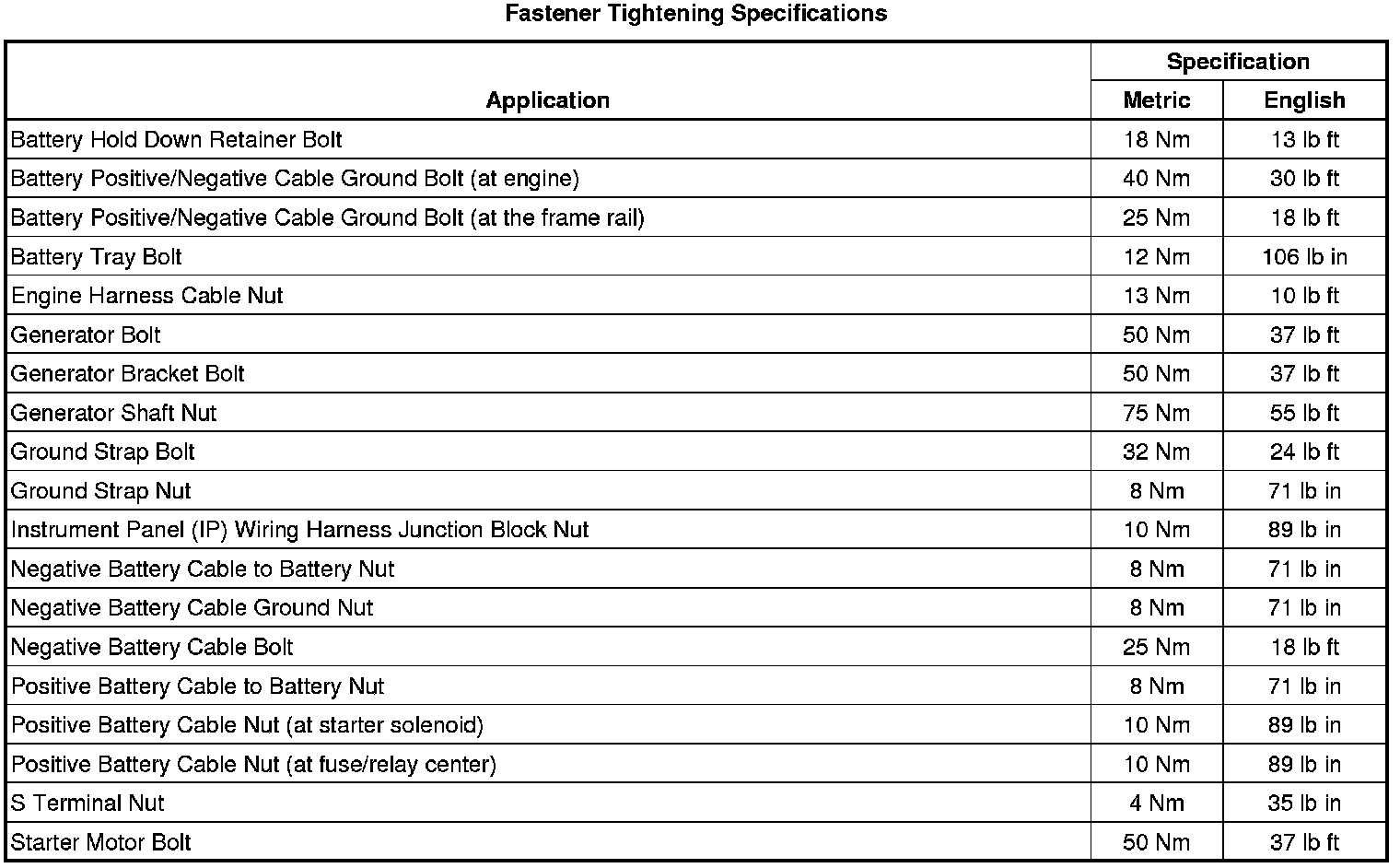 Fastener Tightening Specifications