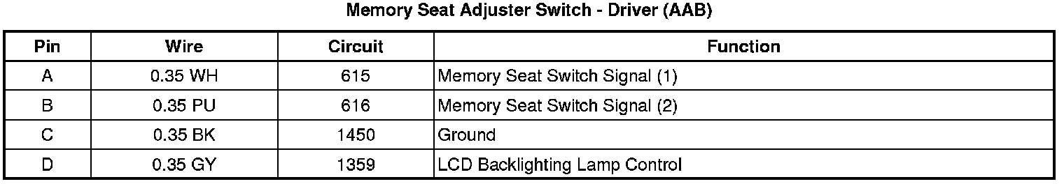 Memory Seat Adjuster Switch - Driver (AAB)