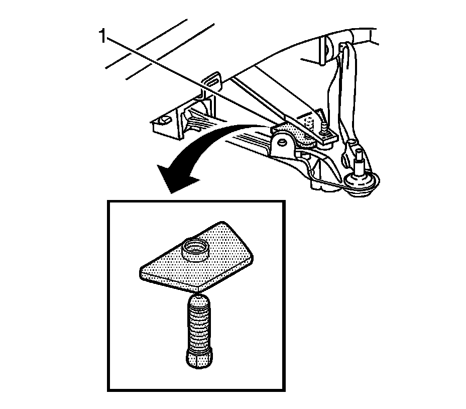 1. Use the J 42743 - Trim Height Adjustment Tool(1) to relieve the tension from the spring adjuster; then adjust the D trim height by turning the spring adjuster bolt.