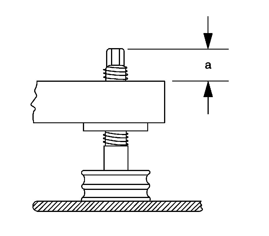 3. Adjust the front adjuster bolt height if necessary to obtain a height (a) of 24 mm (0.945 in) nominal; Do Not exceed nominal by more than ± 5 mm (0.20 in).