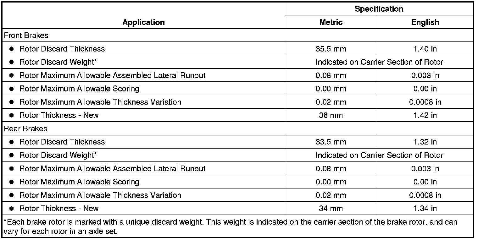 Disc Brake Component Specifications (J57)