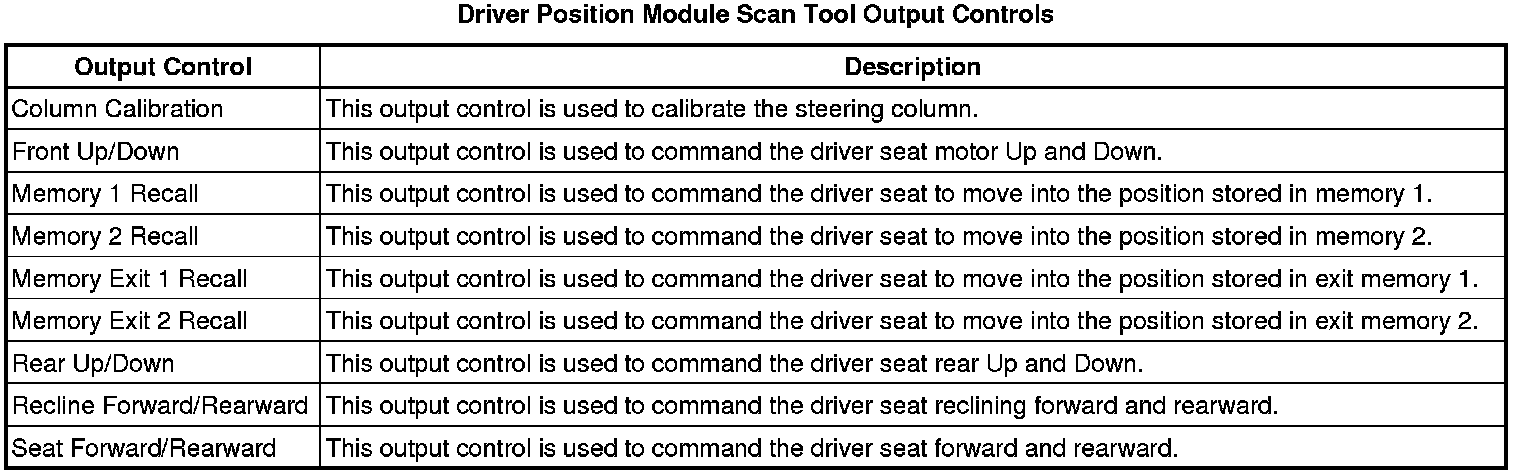 Driver Seat Adjuster Memory Module Scan Tool Information