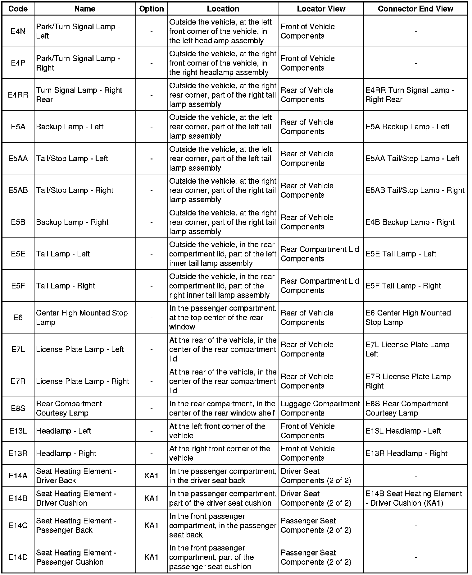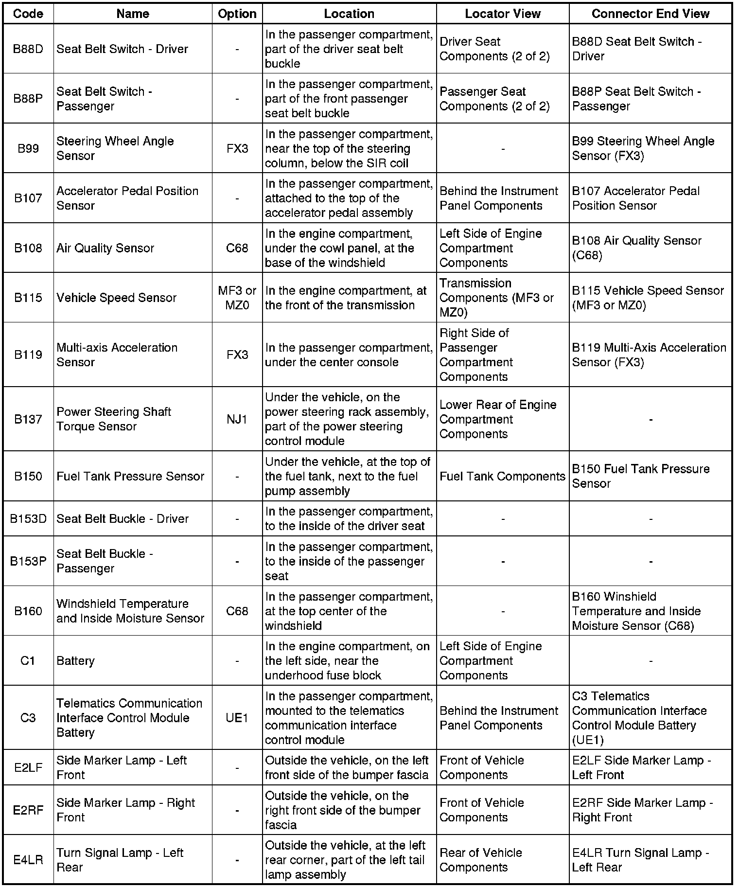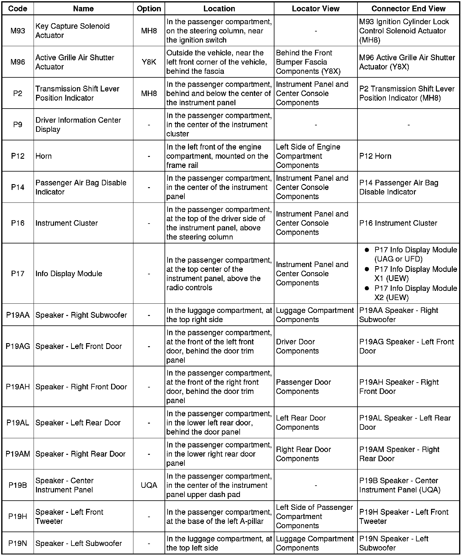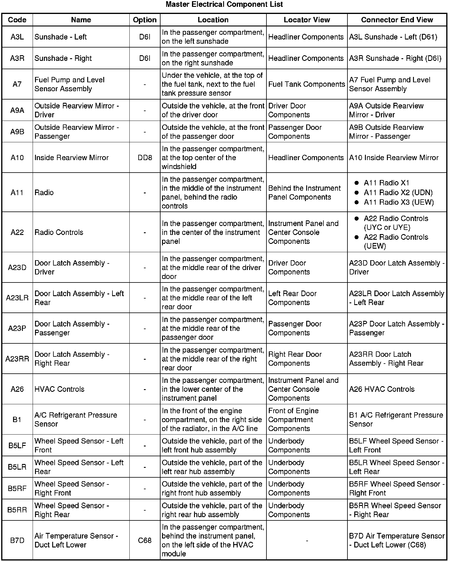 Master Electrical Component List
