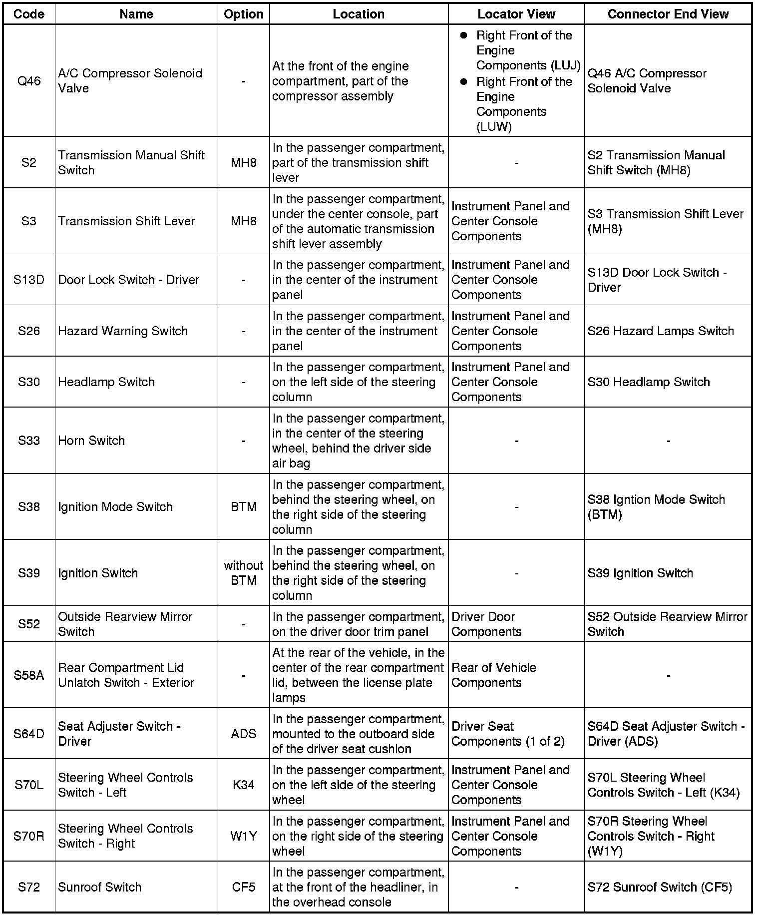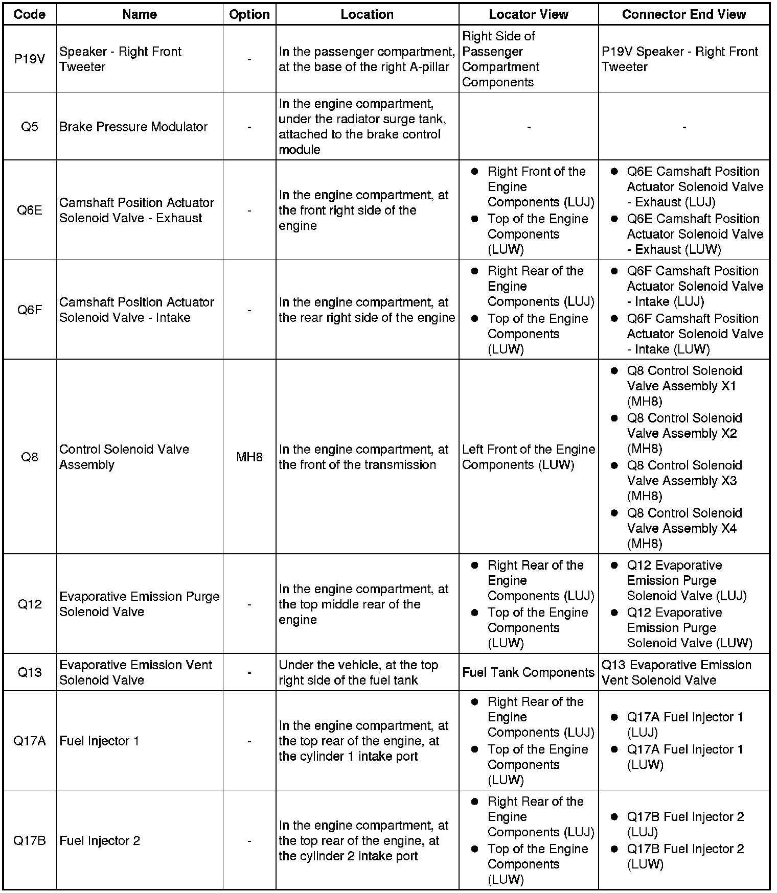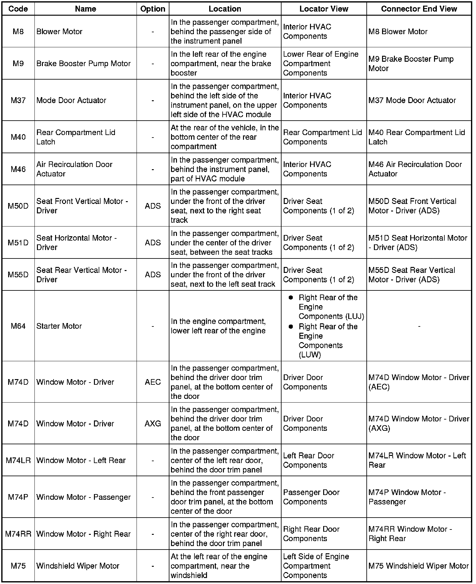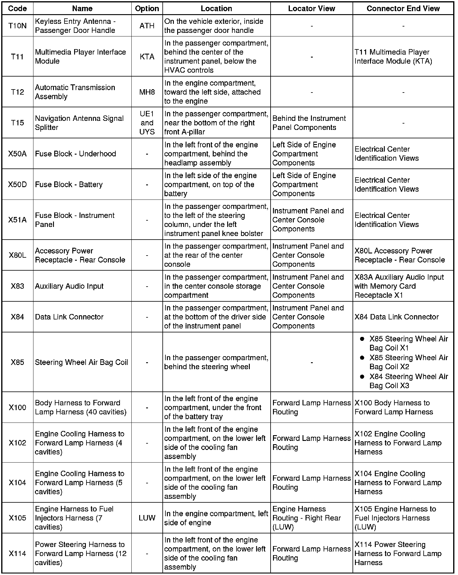 Master Electrical Component List