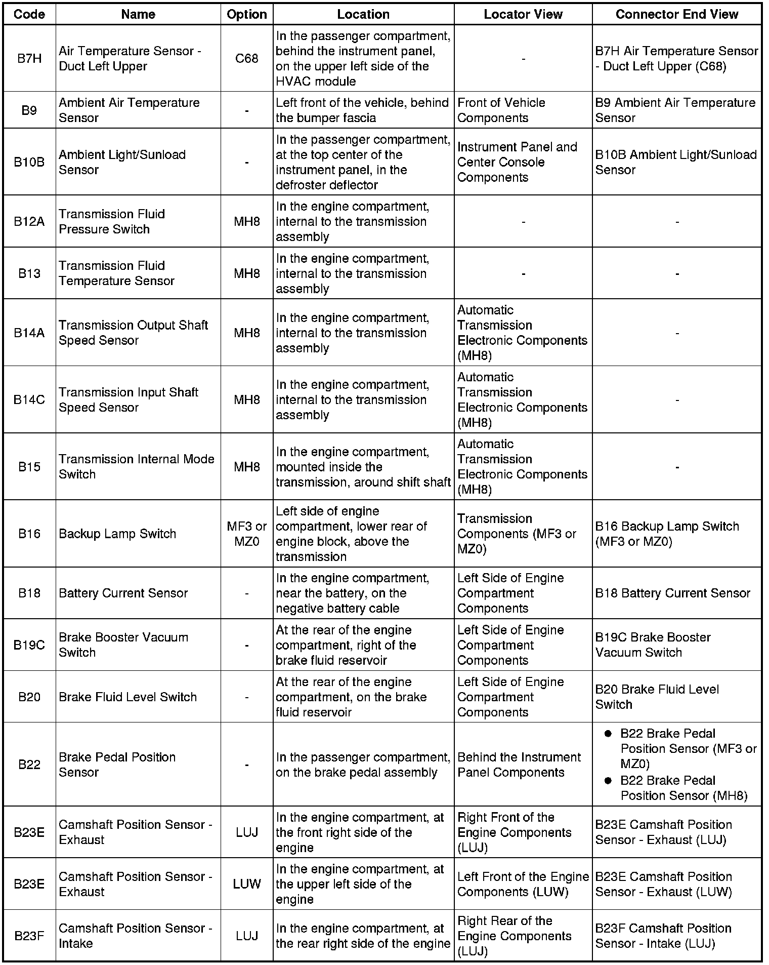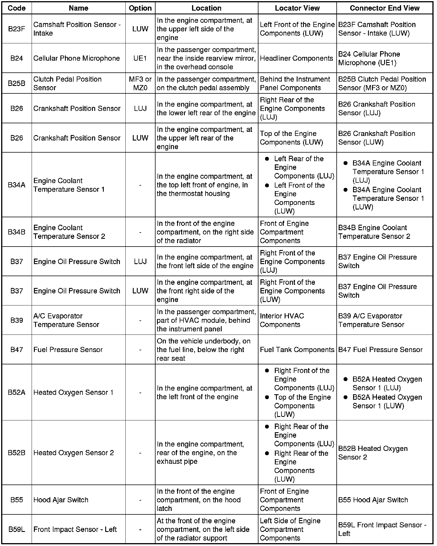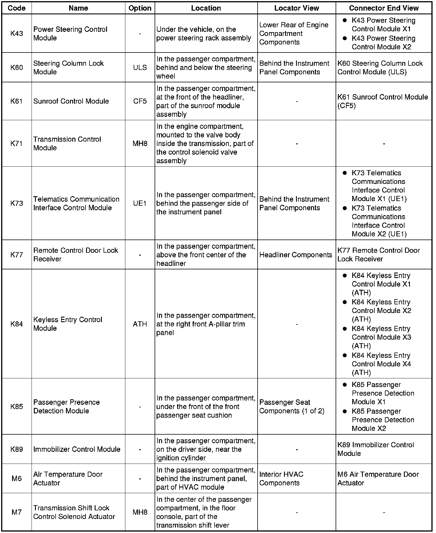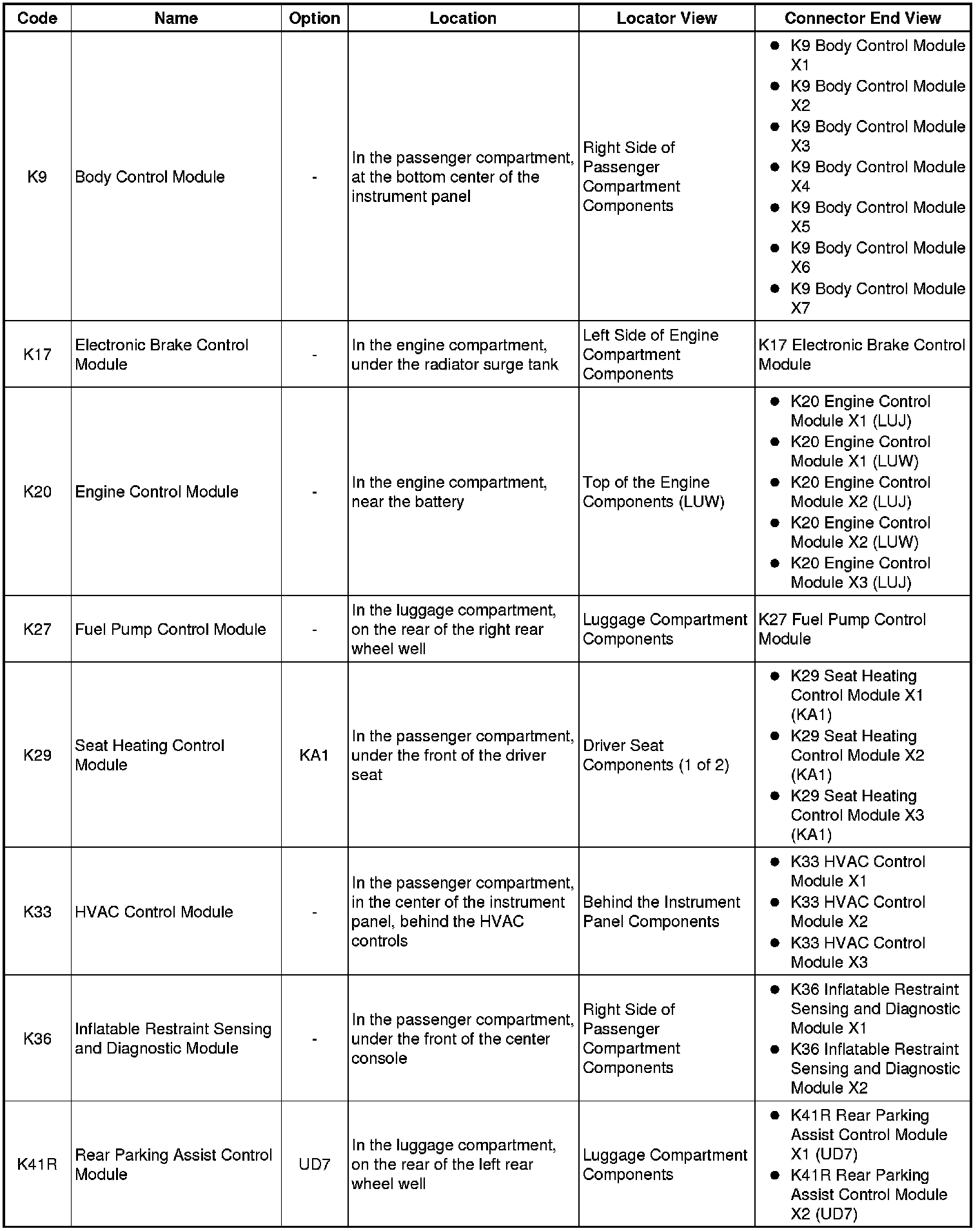 Master Electrical Component List
