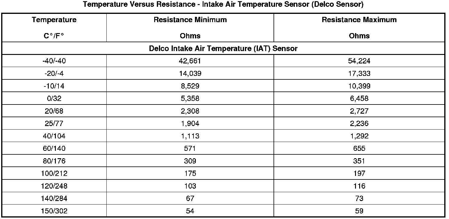 Temperature Versus Resistance - Intake Air Temperature Sensor (Delco Sensor)