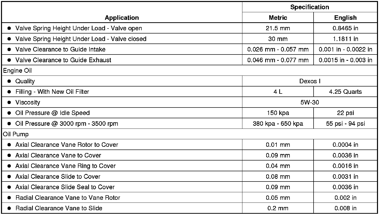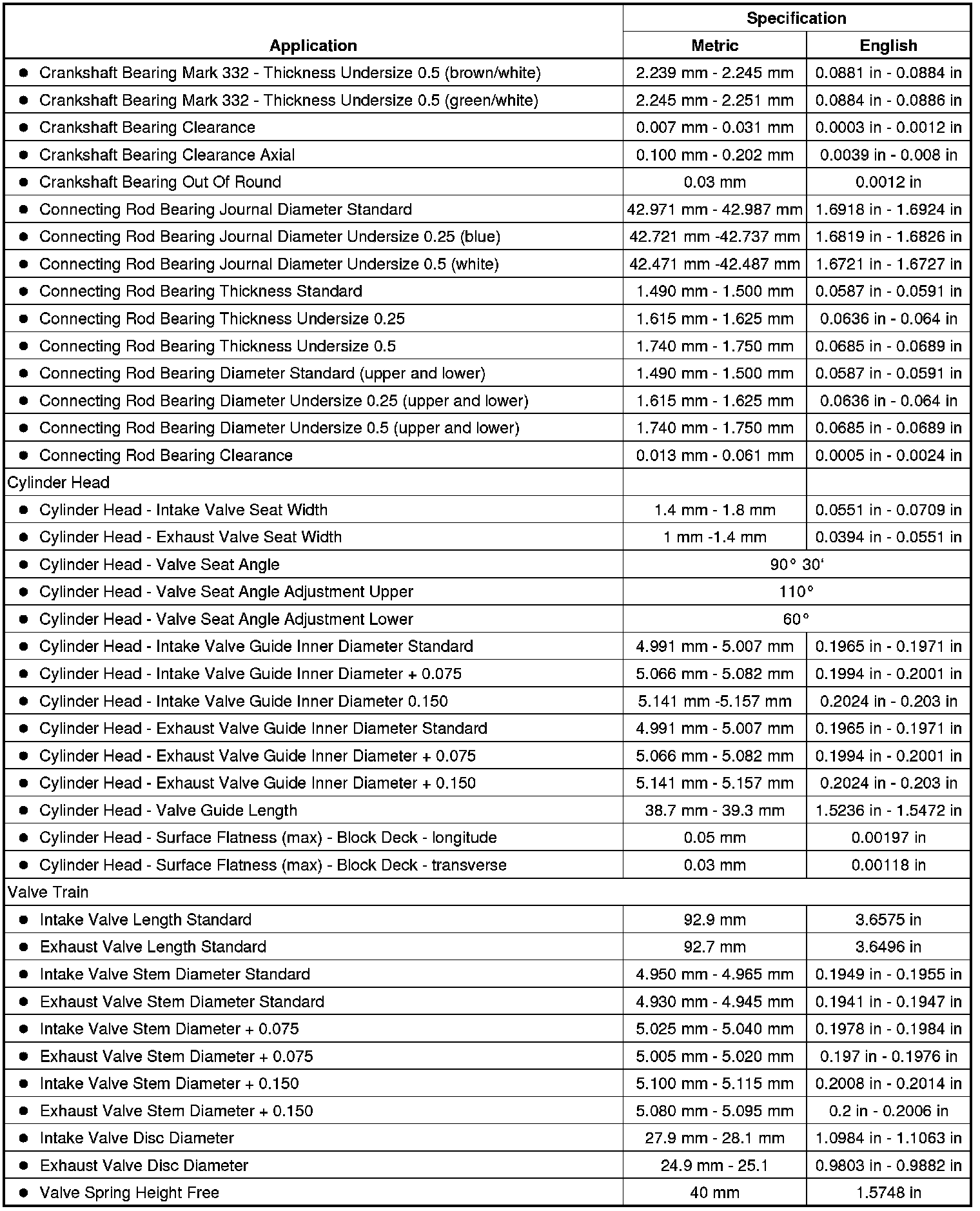 Engine Mechanical Specifications