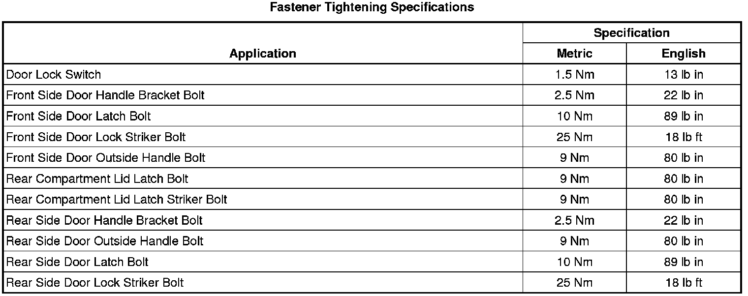 Fastener Tightening Specifications