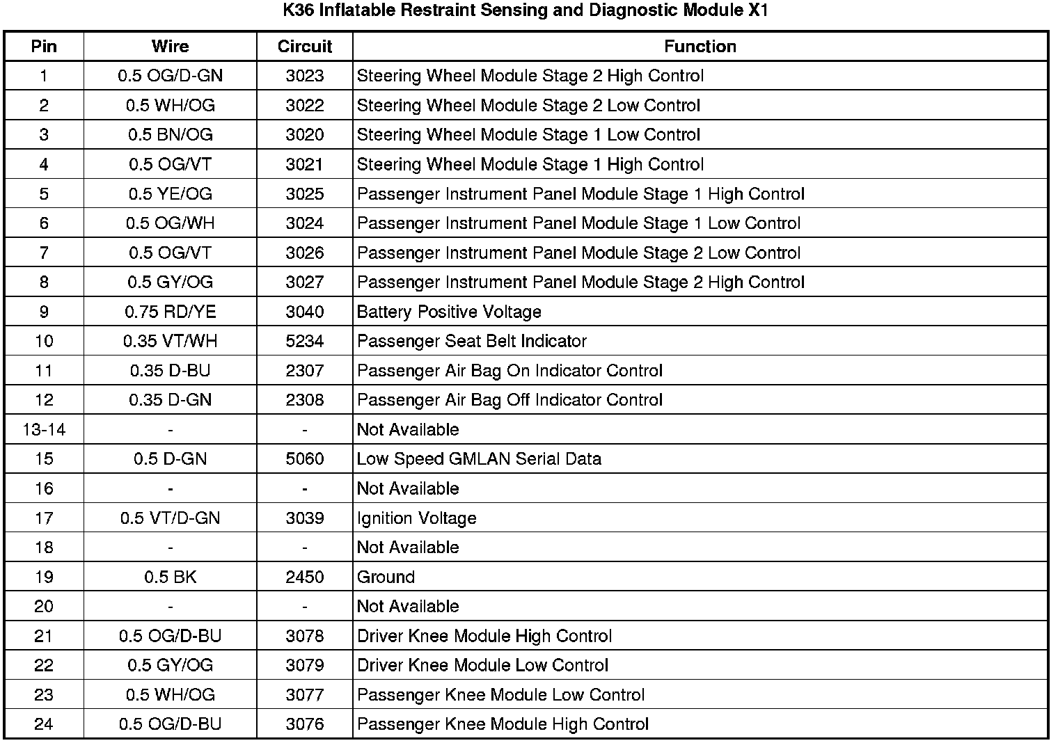 K36 Inflatable Restraint Sensing and Diagnostic Module X1