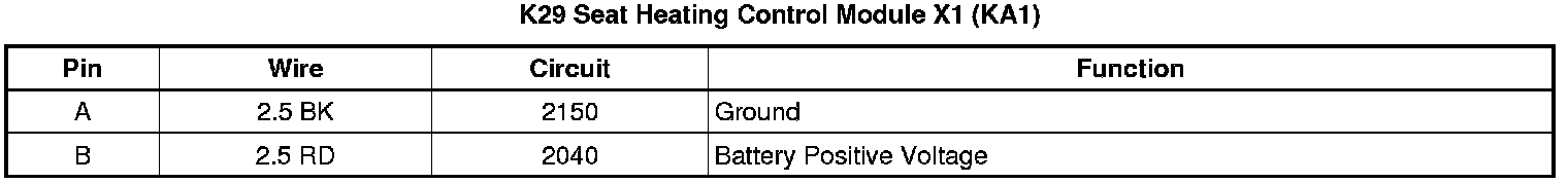 Seat Heating Control Module X1 (KA1)