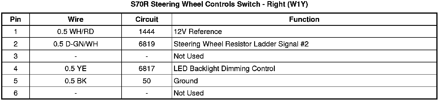 S70R Steering Wheel Controls Switch - Right (W1Y)